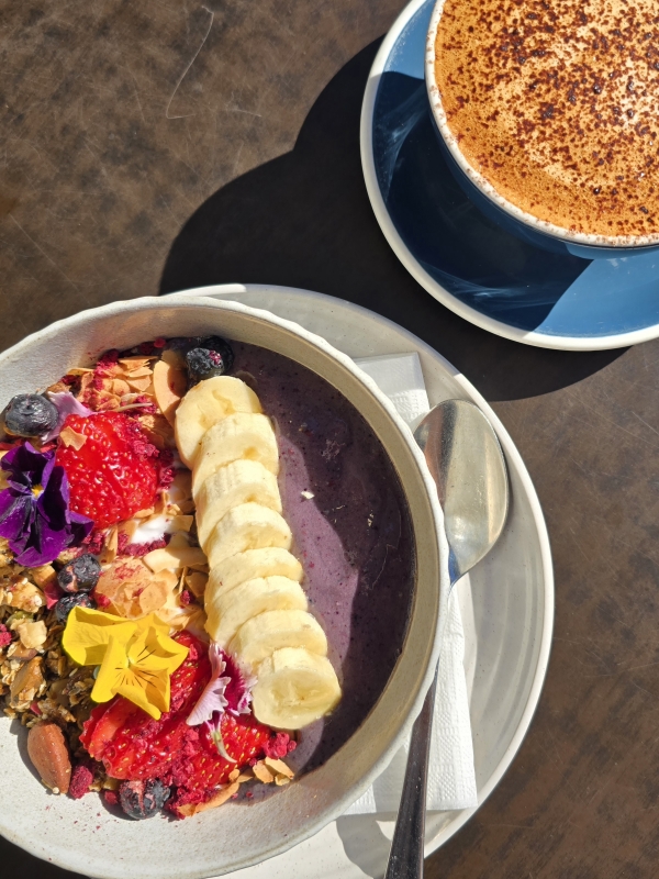 Acai and berries, mango, banana, coconut yoghurt, spirulina, granola, shaved coconut and fruit (vegan) $22.00